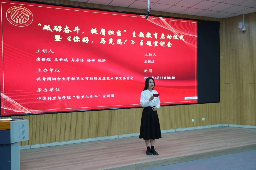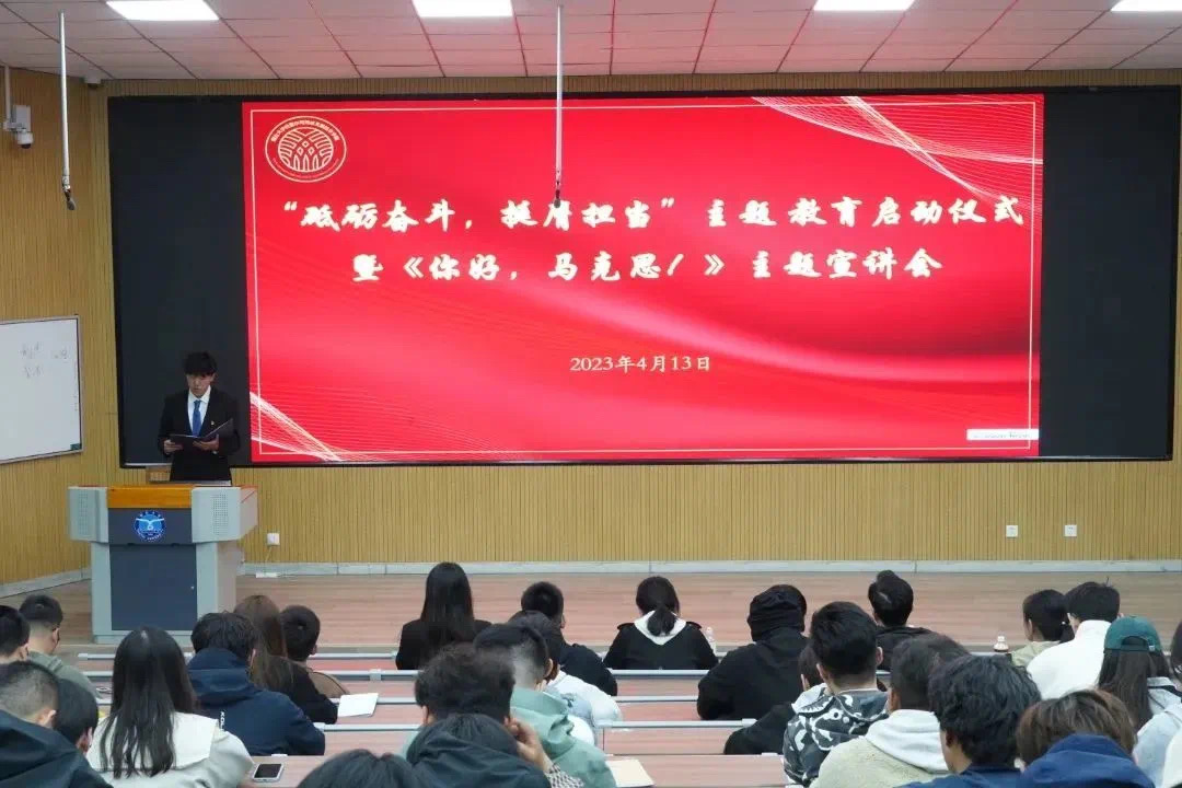 为深入学习宣传贯彻党的二十大精神,深化大学生思想政治教育,4月13日晚,6776永利集团举办“砥砺奋斗 挺膺担当”主题教育启动仪式暨《你好,马克思!》主题宣讲会,学院副书记董燕作动员讲话,学院全体辅导员、学生骨干代表参加。