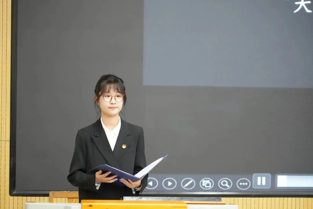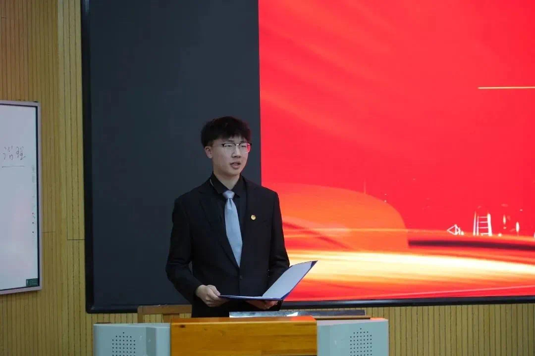 学生代表徐鹏锟在发言中讲到,作为新时代青年大学生,要不断加强理论武装,深入学习实践,特里尔学院学子应以本次主题教育为契机,在学院系列理论学习、实践活动、评优表彰中砥砺奋斗,挺膺担当,不断感悟新时代伟大成就,领悟“两个确立”的决定性意义,增强“四个意识”、坚定“四个自信”、做到“两个维护”。