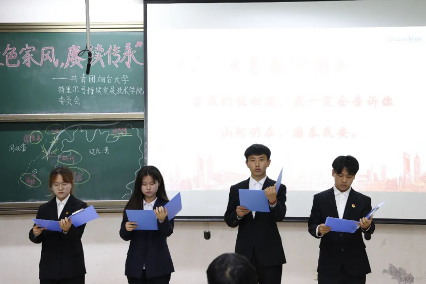 此次活动主要分为两部分,第一部分由两位宣讲同学讲述四位老同志的英雄故事与家风传承,第二部分由四位同学朗诵《青春中国》。