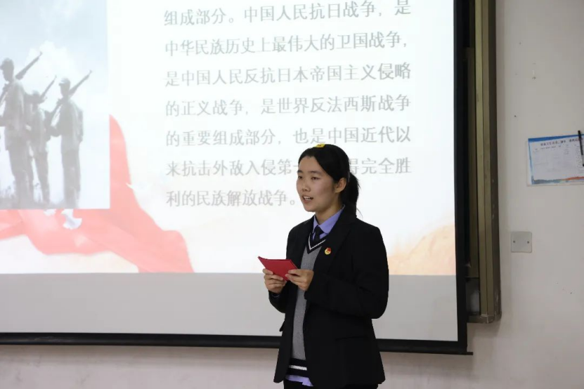 由杨云飞、郝韵两位同学,讲述郝有德、郝有兴、刘炳旭老同志的英雄故事,讲述郝有恩同志对红色家风的传承以及宣讲人郝韵同学作为红色家风传承人的传承与发扬。在宣讲中,两位同学讲到:“无数革命先烈抛头颅洒热血,用鲜血和汗水浇灌了耀眼的国旗,革命先烈的精神一直指引着中华儿女砥砺前行,这是历史的回眸,也是精神的传承。我们作为新时代青年,应该继承与发扬红色精神,终身学习、敏于求知,专攻博览,关心国家、关心人民、关心世界,担当社会责任,要把个人的奋斗目标和国家,民族的命运联系在一起,人生才有真正的意义。” 正如鲁迅先生所说:“我们自古以来,就有埋头苦干的人,有拼命硬干的人,有为民请命的人,有舍身求法的人……这就是中国的脊梁。”无论我们走多远、走到多么光辉的未来,红色基因时刻不能忘、须臾不能丢,薪火相传的文化自信更坚定,敦亲睦族的精神力量更强大,要将英雄荣光发扬光大,光耀中华!