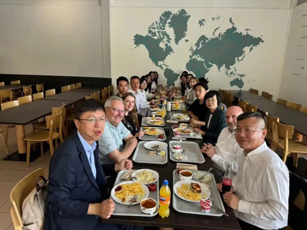 随后,代表团亲切看望了我院德交流的10余名同学们。冯素玲对于学生们的学习以及生活上的具体情况进行了解,并表达了对学生们寄予的期望。她希望学生们能够把握好这次来之不易的机会,认真学习德国教学的专业知识,用心感受不同国家文化间的区别,开阔自己的眼界,做好中华优秀传统文化的传播者。冯建表示学校会全力支持同学们的学习和生活。张西俊着重询问了同学们交换期间的具体感受以及遇到的困难。他鼓励学生们积极面对挑战,努力实现自己的目标。座谈后,代表团与同学们共进午餐。
