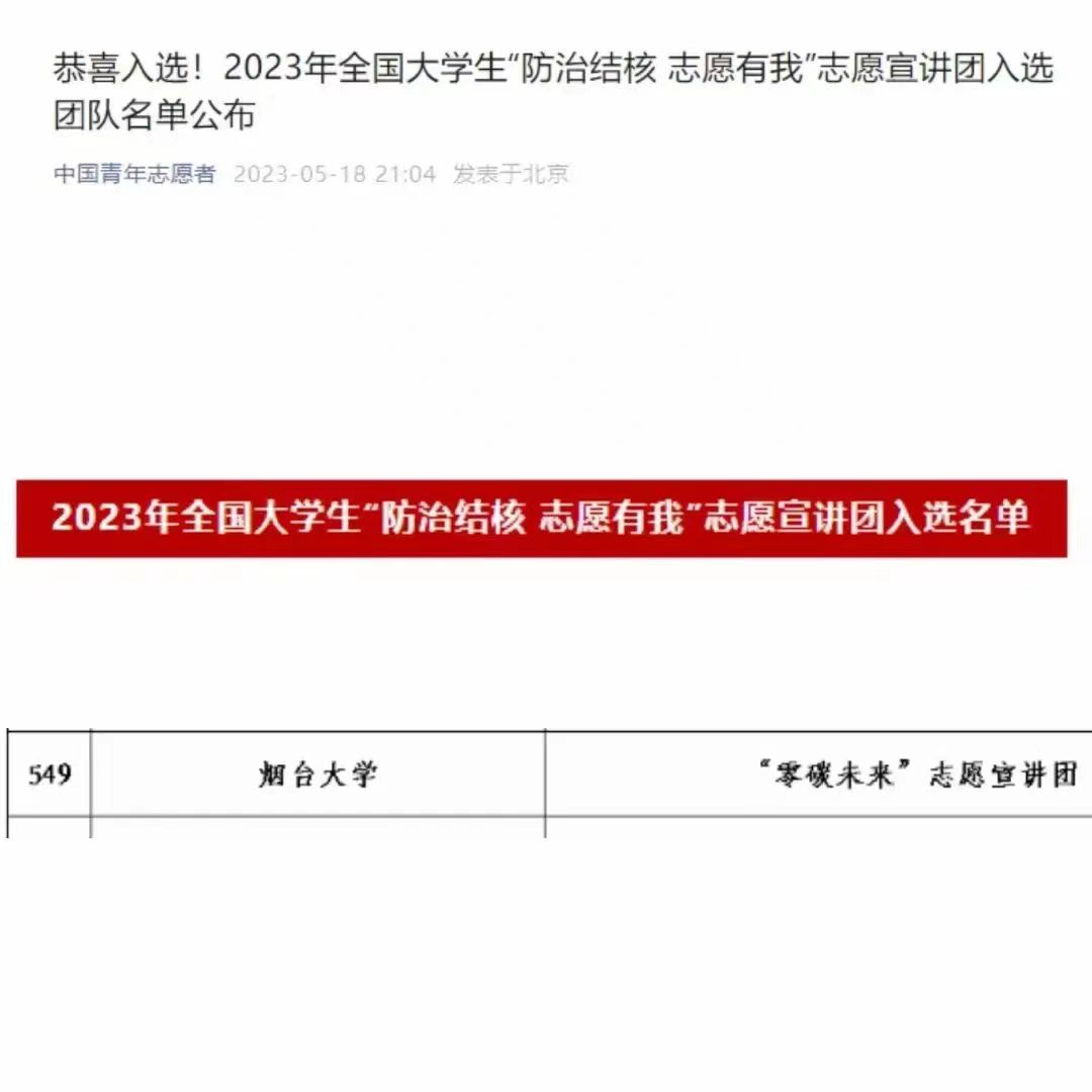 近日,团中央青年志愿者行动指导中心联合全国青少年井冈山革命传统教育基地、井冈山管理局、中国核工业集团有限公司、国家疾病预防控制局传染病防控司等单位发布了遴选2023年全国大学生志愿宣讲团通知,为深入开展学习贯彻习近平新时代中国特色社会主义思想主题教育,引导学院广大青年学子弘扬奉献、友爱、互助、进步的志愿精神,经过前期申报,我院两支宣讲团队从全国600余所高校的3000多支宣讲队伍中脱颖而出,“特里尔青年”宣讲团成功入选2023年全国大学生井冈山精神志愿宣讲团和“两弹一星”精神志愿宣讲团,“零碳未来”志愿宣讲团入选2023年全国大学生“防治结核 志愿有我”志愿宣讲团。