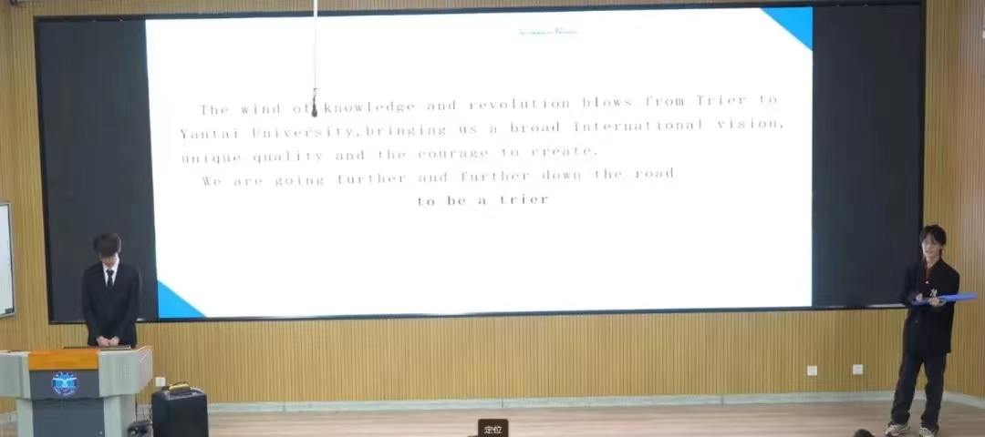 在答辩中场,由王锦琪,孙静杰,宋斯清,李佳乐四名同学倾情献唱庆祝中国共青团成立100周年宣传推广曲《有我》,彰显出特里尔青年学子们如火般的奋斗青春。