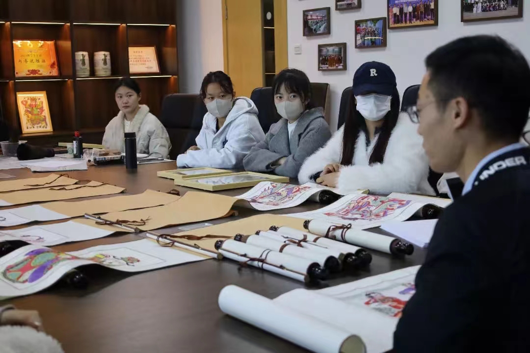 会议结束后,与会领导及学生前往学院非遗体验工作坊,体验东昌府木板年画制作方法。