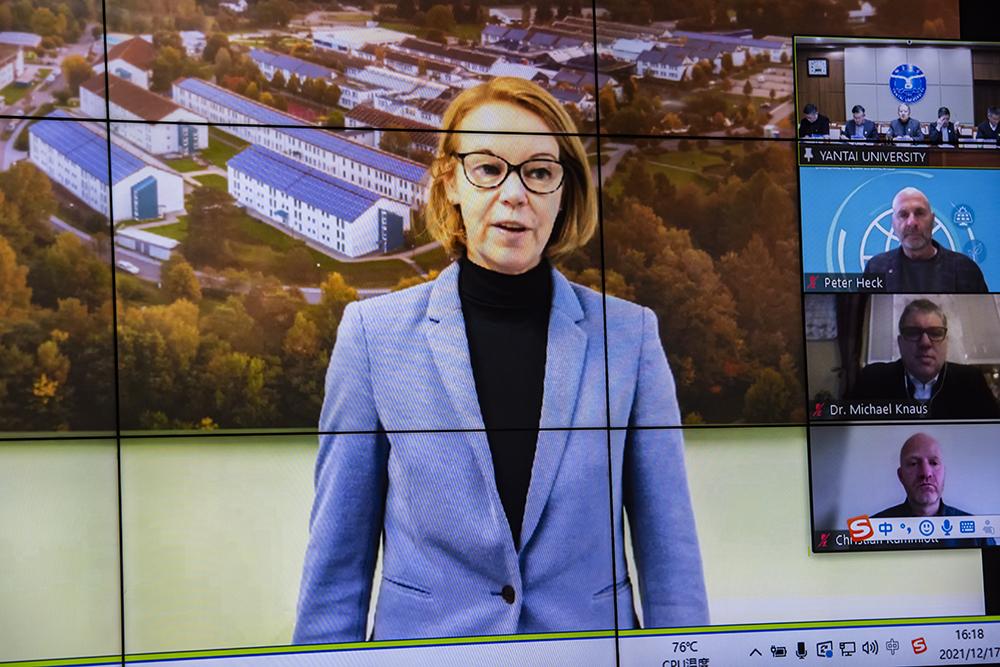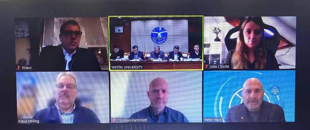 On December 17, the 2021 Joint Management Committee Meeting of Yantai University Trier Collegeof Sustainable Technology (hereinafter referred to as "Sino-German Trier College") was successfully held. The meeting was conducted online.The President Duan Peiyong, Vice President Song Zhongmin,Directorof Academic Office,Director of Graduate School,Director of International Office and the person in charging of Sino-German Trier Collegefrom Yantai University attended the meeting.The President Dorit Schumann,the dean of the School of Environmental Economics and Environmental Law and the head ofthe Institute for Applied Material Flow Management from Trier University of Applied Sciences attended the meeting. Heads of some majors related to cooperative education from Yantai University also attended the meeting as non-voting delegates.