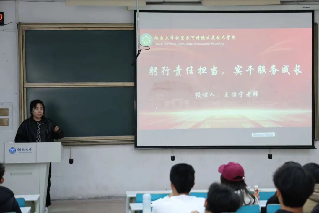 中德特里尔学院学生会指导老师王怡宁老师以“责任担当,实干服务”为主题,带来了首场专题讲座。王怡宁老师强调学生会成员要树立正确的工作态度,增强个人的综合素质和工作能力,在实践中践行责任,以身作则。