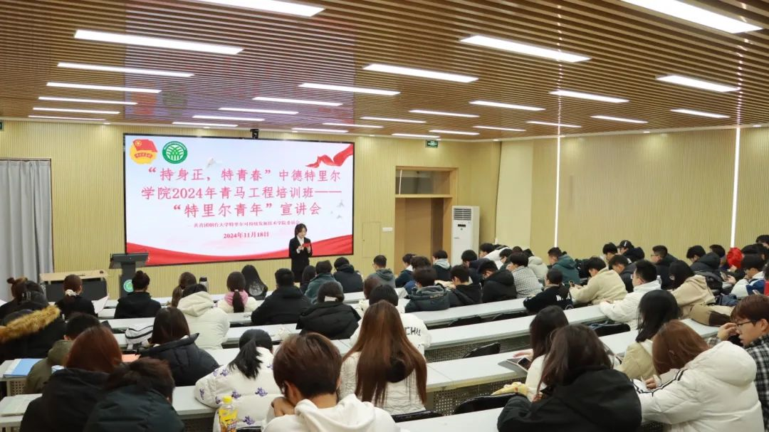为深入学习党的二十届三中全会精神,提高学生干部队伍综合素质,11月18日,中德特里尔学院于育秀大楼104室举办中德特里尔学院2024年“持身正,特青春”第三期青马工程培训班之“特里尔青年”宣讲会,开启一场思想铸魂与青春赋能的新征程。
