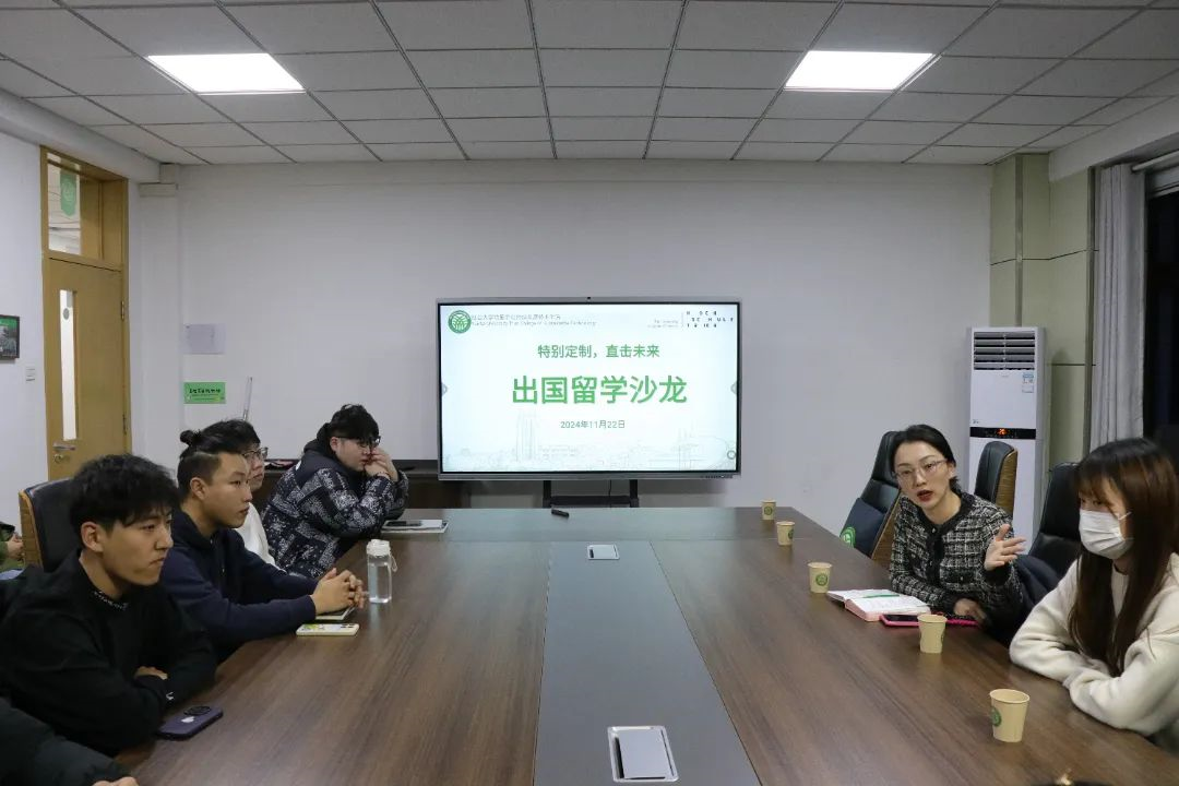为有效开展分类指导,为有出国留学意向同学提供帮助,我院于11月22日晚在育秀大楼204举行出国留学交流沙龙,并邀请校外具有留学指导经验的刘金鑫老师进行分享。