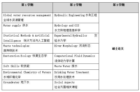 水利工程硕士课程包含两个学期的课程,需要修够60个学分,第三个学期用来做硕士论文,论文部分占30个学分。