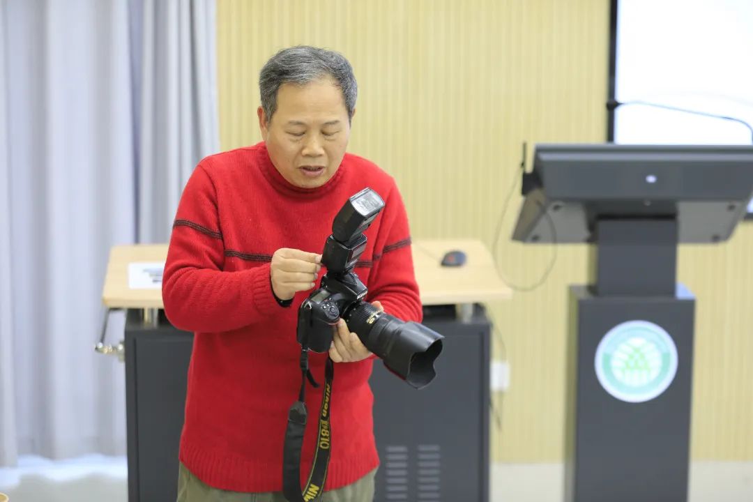 之后,袁兆军老师就摄影技法方面说明摄影与美术相通,需注重虚实、主次关系的处理。拍摄时应明确主体,以次要元素为衬托,避免画面混乱,只有构图好、风景靓才算一张好片。技法服务于摄影师的情感表达,实践中需灵活运用长焦、短焦等镜头特性,结合内容选择构图方式,为画面“留白”以增强叙事空间。袁老师依据自己的经验为佐证,就会议、运动会、演出场景等拍摄手法和参数进行指导,对细节的着重刻画和正确时机的把握提出了实用性的建议。除去这些摄影“公式”,实操也格外重要。就袁老师习惯而言,提前到会场熟悉流程,摸清地形,调好参数才能在拍摄期间捕捉到易逝的精彩画面,真正做到游刃有余。唯有拍好这些不同的时刻,才能相对完全的记录下这场会议。
