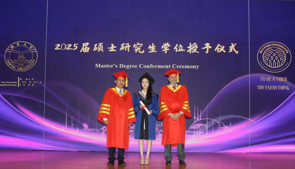 王艺霖同学和王春童同学分别作为2025届研究生和本科生代表,向学校、学院以及所有老师致以衷心的感谢。他们表示以后将运用学院培养的国际竞争力和专业技能,在全球可持续发展领域贡献特里尔青年力量。