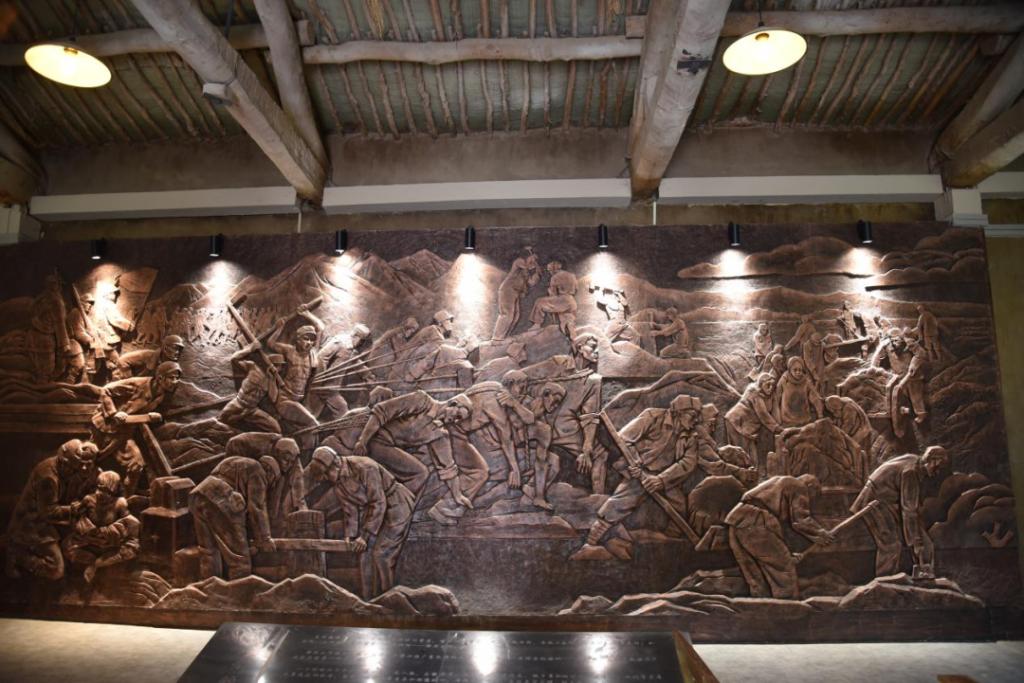 踏入质朴礼堂,迎面的浮雕墙——“拓荒者的丰碑”赫然入目。下方雕刻的山脉,是巍峨天山;中间呈现的,是广袤塔里木盆地。回溯20世纪五六十年代,老一辈解放军、支边青年响应号召进疆。浮雕呈现的,有大家熟知的“伊塔事件”相关场景,彼时没有先进工具,战士们全凭肩挑背扛,硬生生修筑起上游水库、胜利水库、多浪水库,将热血与汗水,浇筑成边疆建设的基石。