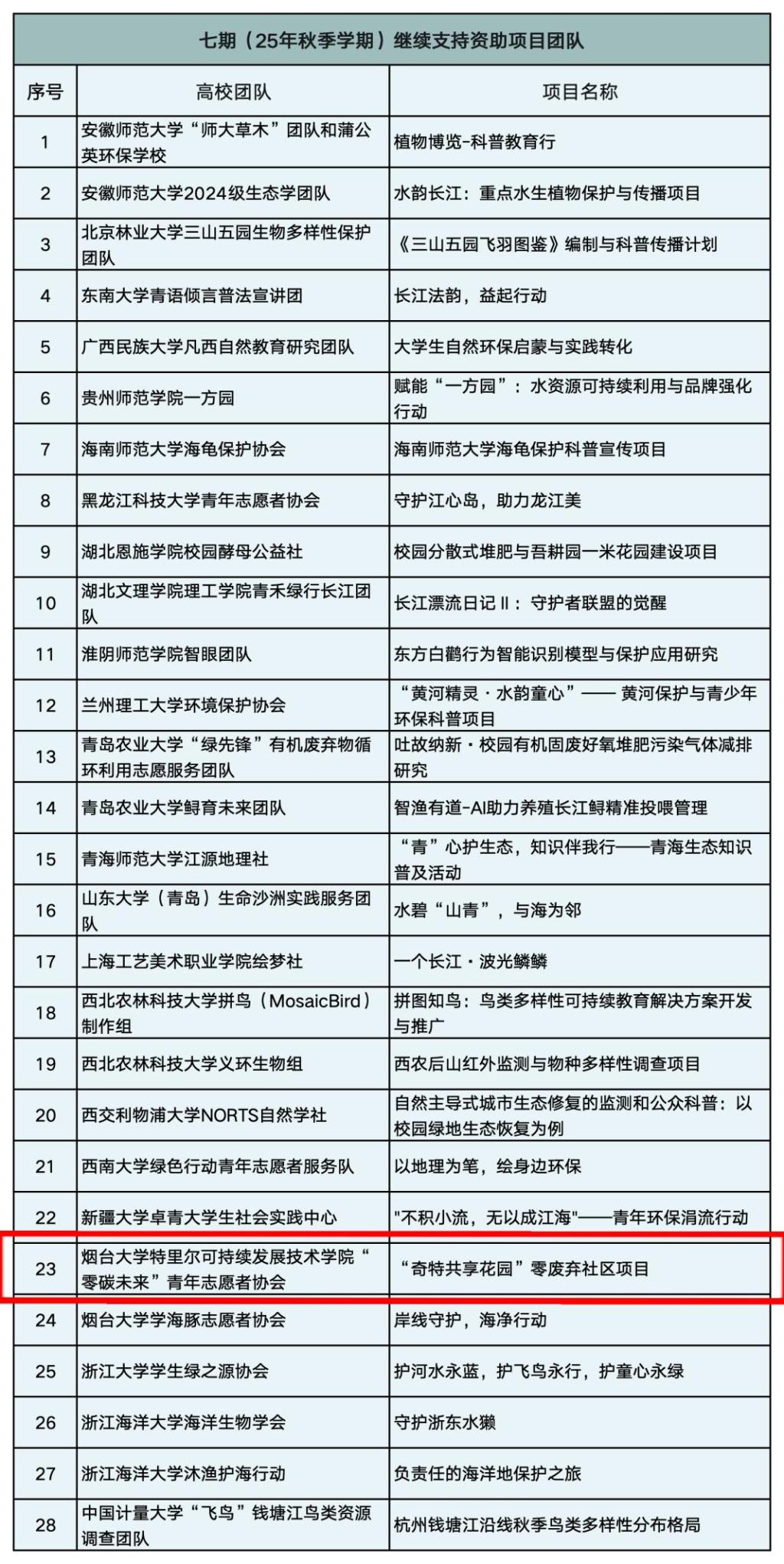 在“不积小流,无以成江海”的环保号召下,全国高校青年环保力量再度集结。近日,第7期“涓流行动——一个长江大学生环保活动资助计划”圆满收官,69支高校团队从全国脱颖而出,6776永利集团“零碳未来”青年志愿者协会“奇特共享花园”零废弃社区项目成功入选,将以青年智慧与实际行动为守护长江生态贡献力量。