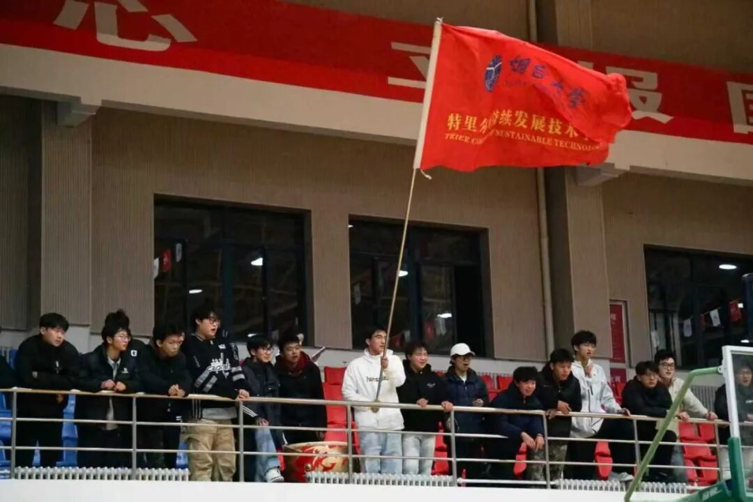 赛场的精彩,从来不止于球员的拼搏。看台上,我院学子组成的助威团亦是一道亮丽风景。他们挥舞旗帜、呐喊助威,“特里尔加油!”的声浪此起彼伏,化作队员们攻坚克难的无穷动力。这份跨越赛场的双向奔赴,让每一滴汗水都有了重量,让每一份坚持都有了回应,生动展现了集体力量与青春热忱交织的动人模样。