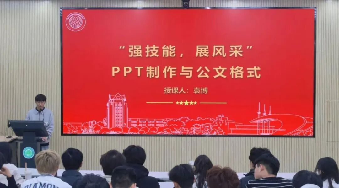 主席团成员袁博在技能培训中表示,PPT制作与公文写作是展现组织风貌、推进工作的重要载体。成员应掌握PPT逻辑与视觉表达技巧,规范撰写各类公文,确保信息传达准确、工作推进有序。