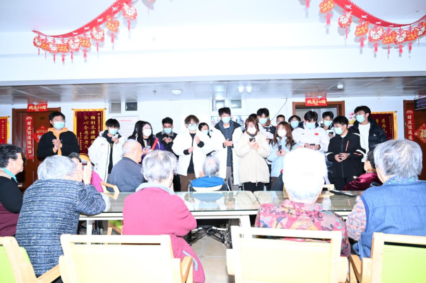 此次活动分为慰问关怀老人和才艺表演两部分。开始,由敬老院负责人带领志愿者参观熟悉环境并明确安排了每个志愿者的任务。接着由志愿者进行开场朗诵,完毕后,各组志愿者根据安排同老人聊天并进行一对一教学,教授老人智能手机基础操作并普及预防网络诈骗的相关知识。