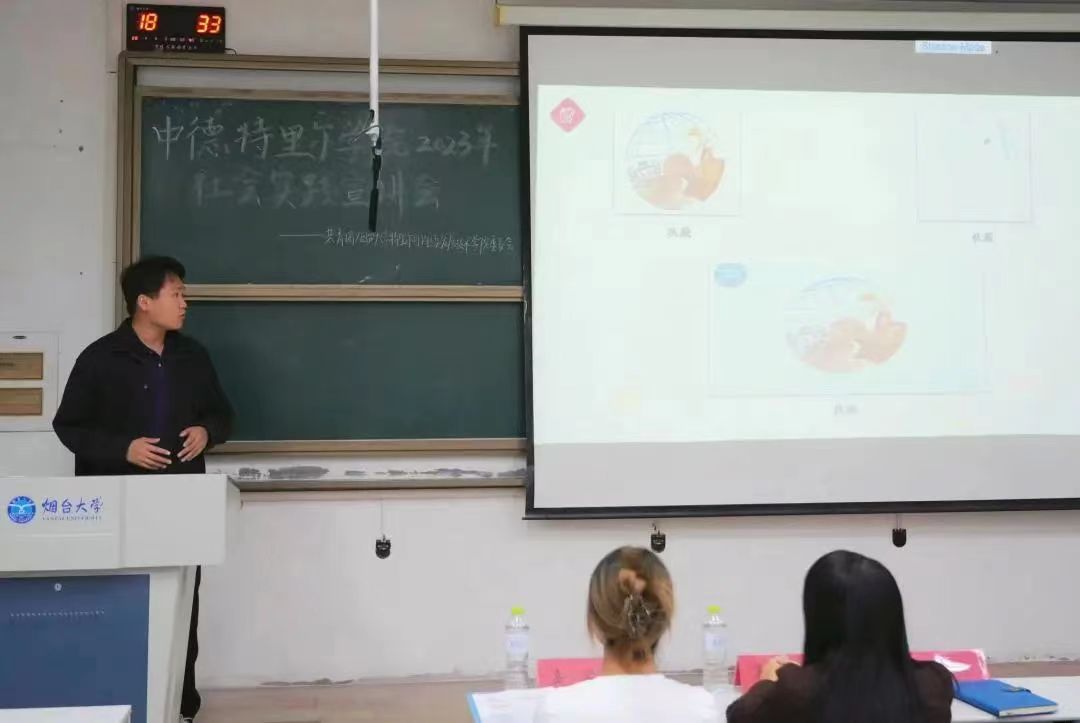 为深入学习贯彻习近平新时代中国特色社会主义思想,全面学习宣传贯彻党的二十大精神,扎实推动实践育人,中德特里尔学院于5月25日晚在综合楼117举行“2023年暑期社会实践”宣讲会。实拓部副部长李雨晨主讲,学院研究生会主席王璐琪、学院旅动乡村实践队代表黑小棠、经管学院i土地实践队代表吕纯森出席会议,部分学生代表参加会议。