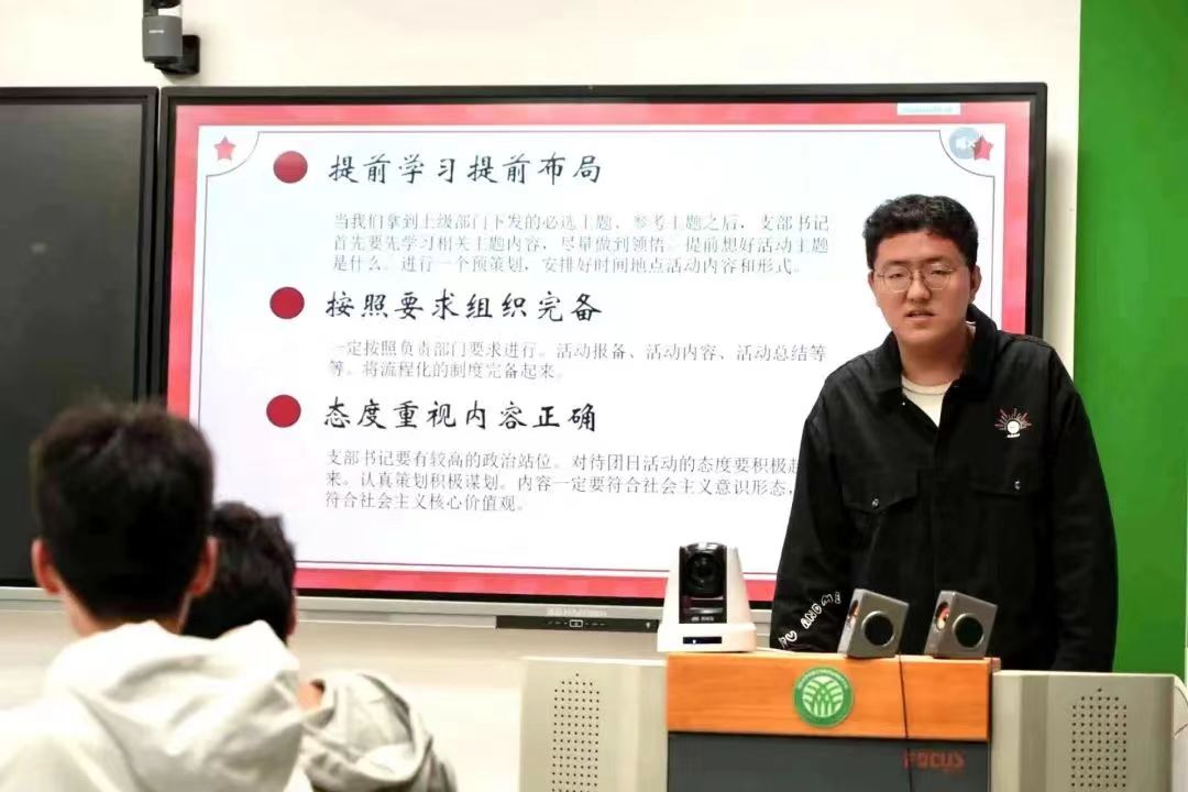 孟德志同学表示主题团日活动是考核一个团支部的重要指标,他结合自身经验,着重向团干部们从团日活动开展的注意事项,前期组织策划,把握活动意识形态三方面分享了团日活动的举办经验。让同学们认识到活动准备完善、内容充实丰富是团日成功举办的关键所在。