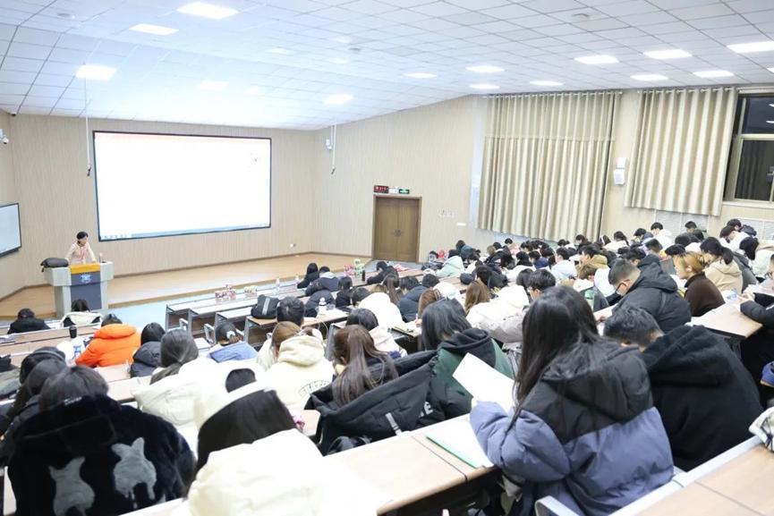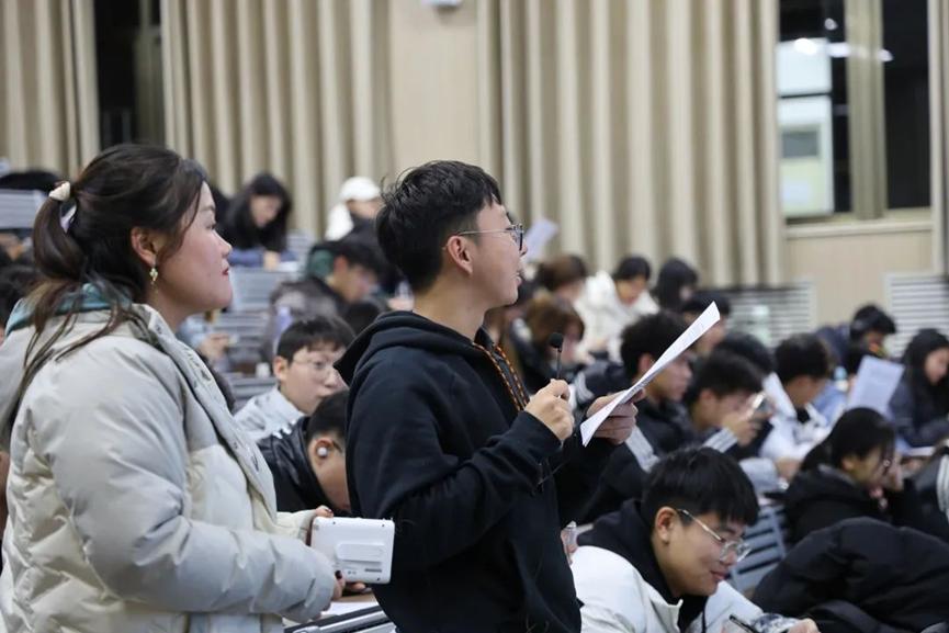 在讲座开始前,李老师给台下学生下发了考研英语真题专项。老师从真题入手,向同学们讲解了解题技巧和备考方法,同时分析考研英语试卷题型、剖析分数布局。在老师的指导下,同学们收获颇丰,掌握了相关做题思路。在互动环节中,同学们及时准确地回答了老师提出的问题。