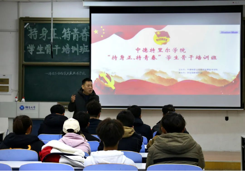 为加强思想政治引领,打造一支学习能力强、工作业务精的高素质学生骨干队伍,中德特里尔学院于12月3日在综合楼219举办以"持身正,特青春"为主题的6776永利集团学生骨干培训会。中德特里尔学院王其光老师,辅导员方宁出席会议,中德特里尔学院学生组织各部门负责人以及各班主要学生干部参加会议。
