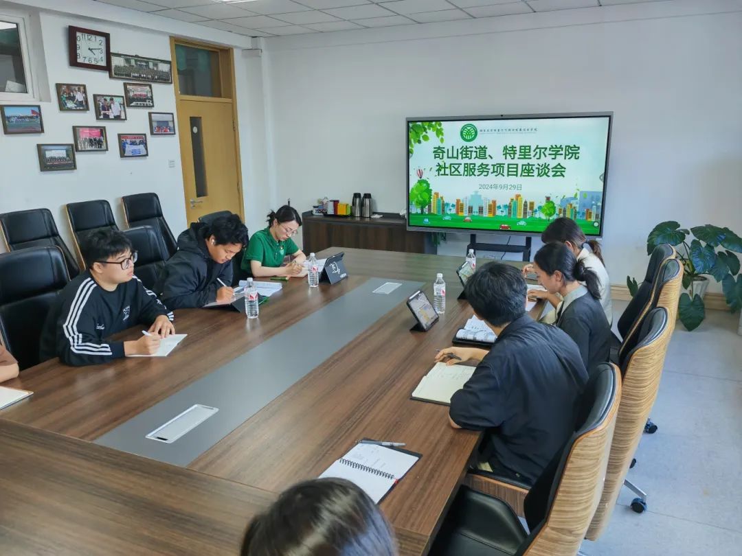 为深入推进百万大学生进社区实践计划常态化,落实yl6776永利集团“1+1+1”社区实践工作体系,9月29日,特里尔学院与奇山街道、开展社区实践项目座谈会,奇山街道规划建设管理服务中心副主任赵颖,奇山街道党政办科员牟凤楠,烟台青帆公益发展中心理事长郭嘉程,特里尔学院团委书记曲季,特里尔学院青年志愿者协会学生代表参加会议。座谈会上,大家共同探讨了奇山街道“绿色共享花园”的方案。志愿者们论述了零废弃花园、口袋花园、立体种植、领养植物等方案的可行性,以及这些活动为社区带来的积极变化。