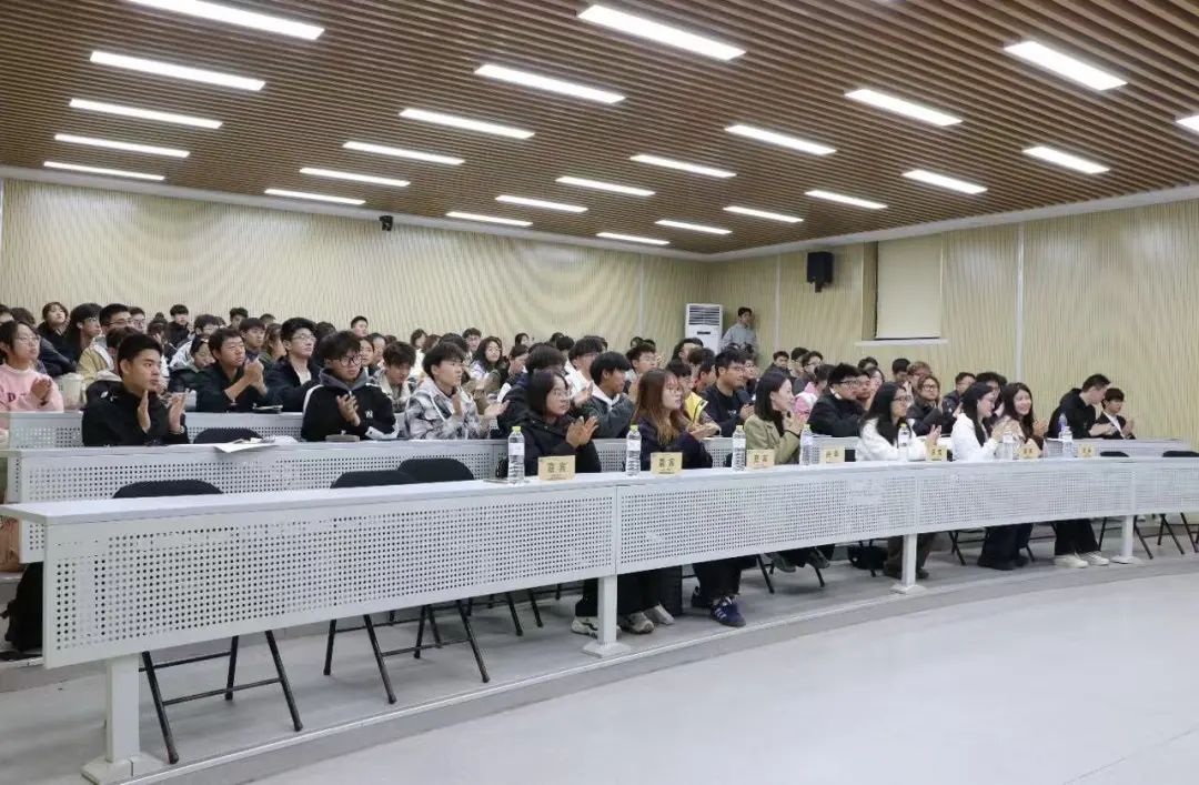 王泽宗向同学们分享了他参与竞赛的经验与心得体会。他从比赛介绍、参赛准备、调研历程、选题建议等方面分别展开,并介绍了参赛作品的要求及特色,提出把握社会热点与创新这一关键要点。凭借自己丰富的参赛经验,他的分享让同学们对参赛选题有了更清晰的认知。