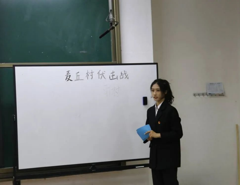 宣讲人李洋为大家介绍了吕照亭同志的主要英雄革命事迹与获得的荣誉奖章。同时,吕照亭同志也是特里尔学院刘译泽同学的堂伯公,宣讲团队也邀请到了吕照亭同志的堂弟,线上为大家讲述吕照亭同志的光荣事迹。宣讲人为同学们详细生动地讲述了吕照亭同志参与的大小战役,重点讲述其参与麦丘村伏击战的全过程。