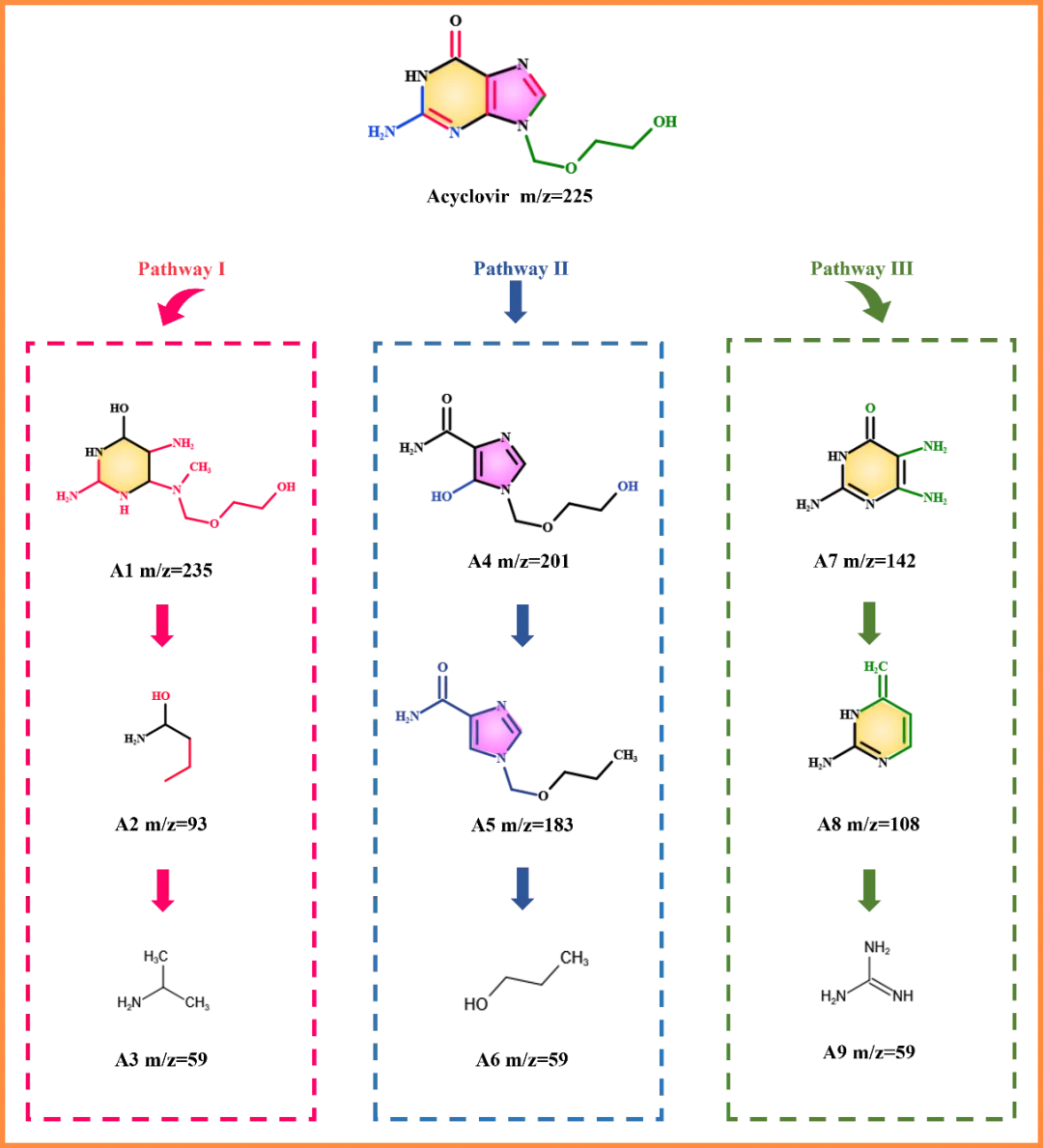 用液相色谱质谱仪(LC-MS)检测阿昔洛韦降解过程中产生的中间产物,详细地介绍了阿昔洛韦三种可能的降解途径。