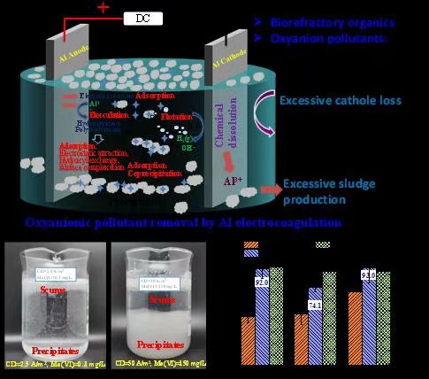 随着经济的快速发展,人们工农业生产和日常生活中使用大量含有(类)金属的物质(如磷、砷、铬、钼等),造成水中此类污染物浓度快速增加,这些污染物在水中呈现出复杂的特性,往往具有形态多样性、有机无机复合性、生物难降解性等特点。此类污染物包括:有机-无机磷、有机-无机砷、As(III)-As(V)、Cr(VI)-Cu(II)、抗生素-重金属络合物等,在日益严格的环境保护要求下,混凝、沉淀、生物等常规水处理技术已难以有效去除上述污染物,给水环境和人体健康造成严重威胁。电絮凝技术是去除此类污染物的有效方法,常用于水与废水深度处理。然而传统电絮凝技术在应用过程中仍存在电极和电能消耗大、污泥产量大等问题,基于节能减污降碳协同增效思路,吕建波教授团队近期在电絮凝技术的电极调控、新型电极开发、反应器和工艺优化组合设计方面进行了一系列的研究,阐明了传统铝电絮凝反应过程中铝电极无谓消耗的根本原因,为工程应用中电絮凝技术的同步除污、降耗和水质毒性削减提供了相关策略,相关成果近期发表在环境领域国际知名期刊《Journal of Hazardous Materials》(中科院I区top,IF13.6)、《Journal of Water Process Engineering》(中科院II区,IF7.0)、《Environmental Science and Pollution Research》(中科院III区,IF5.8)等期刊上,为水中(类)金属和难降解有机污染物的高效去除提供了新思路。yl6776永利集团为发表系列论文的第一作者单位和通讯作者单位。