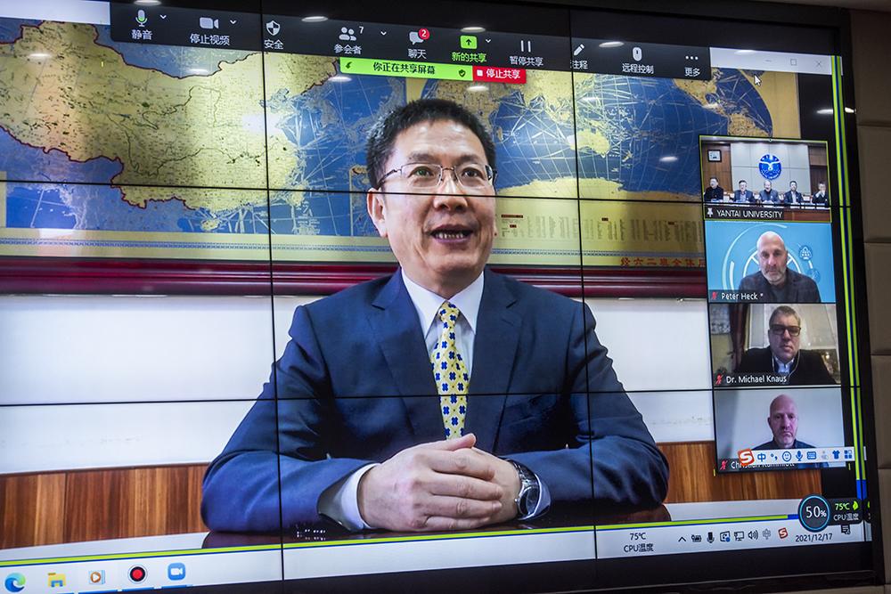 On December 17, the 2021 Joint Management Committee Meeting of Yantai University Trier College of Sustainable Technology (hereinafter referred to as "Sino-German Trier College") was successfully held. The meeting was conducted online. The President Duan Peiyong, Vice President Song Zhongmin, Director of Academic Office, Director of Graduate School, Director of International Office and the person in charging of Sino-German Trier College from Yantai University attended the meeting. The President Dorit Schumann, the dean of the School of Environmental Economics and Environmental Law and the head of the Institute for Applied Material Flow Management from Trier University of Applied Sciences attended the meeting. Heads of some majors related to cooperative education from Yantai University also attended the meeting as non-voting delegates.