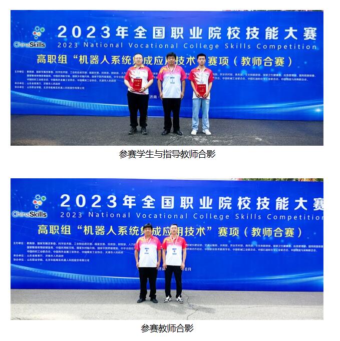 2023年全国职业院校技能大赛高职组“机器人系统集成应用技术”赛项学生赛和教师赛于8月18至24日在山东省济南市举办。我校自控系“机电一体化技术”专业学生任峻玮、徐建洪组成的参赛队在教师郭海林的指导下荣获学生赛三等奖;我校自控系教师郭海林、洪亮组成的参赛队荣获教师赛三等奖。2023年全国职业院校技能大赛高职组“机器人系统集成应用技术”赛项学生赛和教师赛于8月18至24日在山东省济南市举办。我校自控系“机电一体化技术”专业学生任峻玮、徐建洪组成的参赛队在教师郭海林的指导下荣获学生赛三等奖;我校自控系教师郭海林、洪亮组成的参赛队荣获教师赛三等奖。